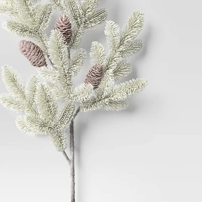 Put a lovely finish on your festive decor with this Flocked Branch Plant Arrangement Stem from Threshold™. This 40-inch plant stem features faux pine branches with flocked needles and pinecones to give your decor a welcoming look. The long stem blends easily with a variety of decor styles, making it easy to place throughout your home.