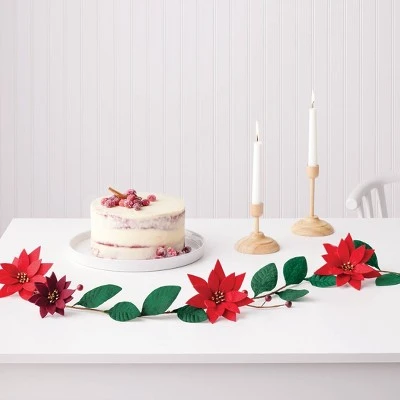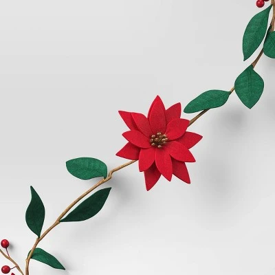 Beautify your Christmas decorations with this Fabric Poinsettia Flower Decorative Christmas Garland from Wondershop™. This decorative garland features a brown stem decorated with bright red and burgundy poinsettia flowers along with green leaves for a charming festive look. The ready-to-hang garland is suitable for wall display or you can place it on the dining table to enhance your holiday setting.
