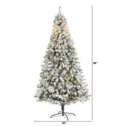 Evoke a winter wonderland this season with the help of this 8ft. Flocked Rock Springs Spruce Artificial Christmas Tree with 500 Clear LED Lights and 1186 Bendable Branches by Nearly Natural. Easy to set-up and entirely maintenance-free, this winter-inspired Christmas tree boasts a rich collection of realistic looking foliage consisting of 1186 easy-to-bend branches for showcasing your own personalized ornaments and holiday accents – all lightly frosted with faux snow, creating a picturesque Christmas. Arriving pre-strung with 500 clear LED lights to eliminate tangles and carefully stabilized on an accompanying stand, this impressive 8’ tall frosted artificial Christmas tree will undoubtedly transform any home or office into a joyous holiday setting for years to come.