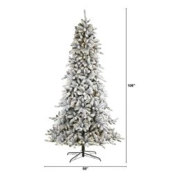 Create a picture-perfect Christmas setting this year with the help of this 9ft. Flocked Livingston Fir Artificial Christmas Tree with Pine Cones and 650 Clear Warm LED Lights by Nearly Natural. Easy to set-up and entirely maintenance-free, this winter-inspired Christmas tree boasts robust tiers of realistic looking foliage made up of easy-to-bend branches for showcasing your own personalized ornaments and holiday accents – all lightly frosted with faux snow, creating the ultimate winter wonderland. Arriving pre-strung with 650 clear warm LED lights to eliminate tangles and carefully stabilized on a metal stand, this impressive 9’ tall frosted artificial Christmas tree will undoubtedly transform any home or office into a joyous holiday setting for years to come.
