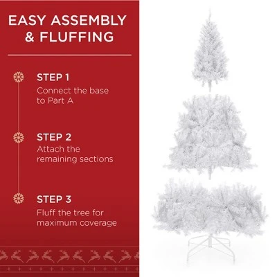 - EASY ASSEMBLY & FLUFFING: Put the tree together in just 3 steps: simply connect the base to the largest section of the tree before attaching the remaining sections and fluffing the branches; Approximate Fluffing Times (4.5/6ft/7.5ft/9ft): 15-30 mins/ 30-45 mins/ 45-60 mins/ 60-90 mins