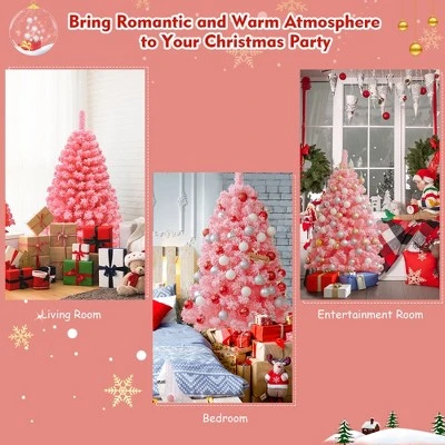 - Unique Pink Decoration Tree: This is an unusual 4.5 feet Christmas tree that covered with thick pink snow powder. Compared with traditional green Christmas tree, this pink artificial tree is more lovely and more fancy. No matte where you put this tree, it could bring strong romantic tone to your home decor.
