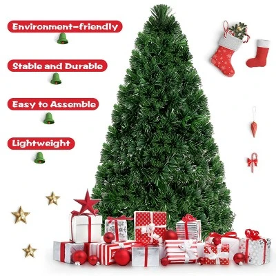 Our new 5Ft Fiber Optic Artificial Christmas tree is an ideal Christmas trimmings. With pre-installed fiber optic, powered by energy saving LED lights, this tree will present 7 different colors. Our trees are in great quality, making it your best choice. The tree is made of fade and crush resistant PVC needles, appears fresh-cut. The tips are sculpted to enhance the trees’ lifelike appearance. In addition the staggered branches give the tree a fuller profile. High density iron bases to keep the tree planted in an upright position. Add some festive to your home with this Christmas tree.