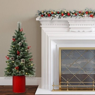 Lightly dusted with sparkling faux snow, our 48-inch tall potted tree is the perfect accent for your home. Our tree can be used inside or outside, making it perfect to use in pairs by the front door, inside by the fireplace or on your covered porch. It comes prelit with 50 battery operated LED lights on a timer so you set it once and it will come on every day at the same time. With no cords to worry about, you can place it anywhere!