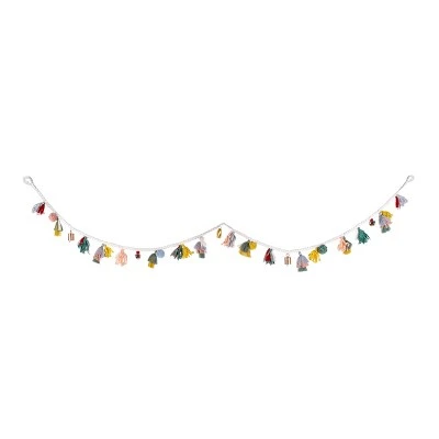 - This fantastically festive Garland features colorful tassels, pompoms, and bells attached to a white rope for a unique, bohemian take on a classic Christmas garland
