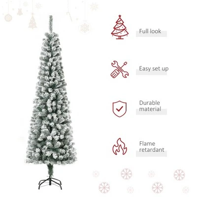 Bring nature home without the mess with this artificial Christmas tree from HOMCOM. Our beautiful holiday tree provides a great alternative to conventional trees with easy setup and little mess or maintenance required. Designed in a full pine tree shape, this artificial flocked Christmas tree consists of full-bodied and realistic plastic tips. This snow-flocked tree is sure to be a striking centerpiece for your family’s holiday décor this year and in years to come.