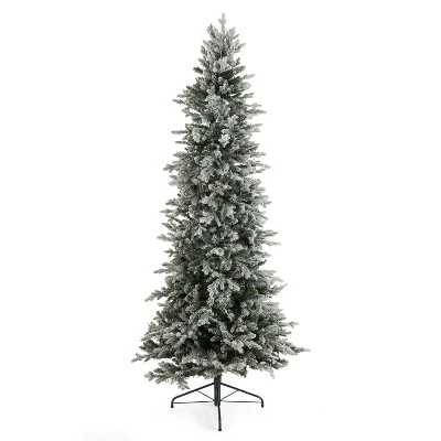 Enjoy all the splendor of a storybook Christmas with the Home Heritage 7.5-Foot Overlight Flocked Prelit Artificial Christmas Tree with dimmable 1,200 clear micro-dot LED lights.With realistic, light “snow” clinging to the branches and lights hidden in the foliage, this Christmas tree brings the holiday cheer to you. You’ll feel like your home is a winter wonderland with this frosted Christmas tree. The holiday tree comes with a remote which offers a dimming feature for optimal brightness. It comes with a metal stand for a safe and sturdy centerpiece in your home. The 1,200 warm white lights provide an enchanting glow against sparkling ornaments, making for a truly dazzling focal point in any space. The ultra-soft specially crafted needle branches make this tree look and feel like the real thing while the handy metal stand keeps it standing tall and sturdy. When the holidays are over, this tree quickly disconnects into separate sections for simple and convenient storage.Grab a cup of hot cocoa, sit by the fire, and have a holly, jolly Christmas when you set up the Home Heritage 7.5-Foot Overlight Flocked Prelit Artificial Christmas Tree with dimmable clear LED lights.