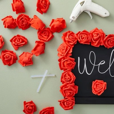 - The Perfect Size: Each one of our red foam flowers measures up to 3.0 inches in diameter and up to 1.3 inches tall; use hot glue or pins to attach the artificial stemless roses onto vases, candle holders, or foam garlands