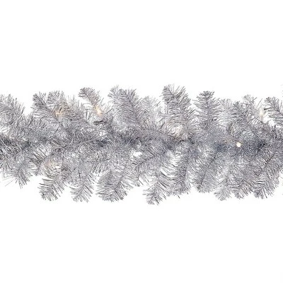 This 9-Foot Pre-Lit Silver Point Pine Garland from Kurt Adler is a lovely addition to any holiday décor. This garland features a silver design, and a 12-inch girth for a full, thick design. Perfect for mantles or any large area of your home that needs a little extra holiday cheer.