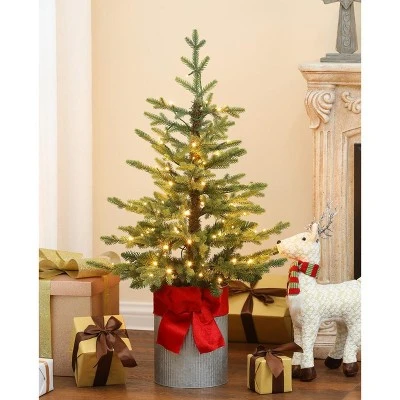 Decorating for the holidays just got easier! Deck the halls with this festive artificial fir Christmas tree with this pre-strung 3.5-foot artificial fir tree. That’s right! No cleaning up tree needles and untangling Christmas tree lights. This tree sets up in minutes and features a special up swept shape. Whether you trim the tree with cherished ornaments and display the tree in its natural beauty, this charming tree will become a favorite of holiday decorations. Smaller trees are a quick and easy way to dress up your home, office, classroom, or church Sunday school room for kids! The artificial tree features green branches made from high-quality material that is not crushed during storage. The artificial tree has a round silver metal pot with a festive red ribbon adding to the festive feel of the tree. Set up the tree, and then just place the lights’ plug-in into the wall and enjoy the spirit of the season. Makes a great gift for that special person this holiday season!.