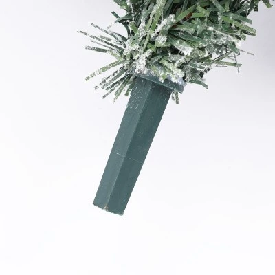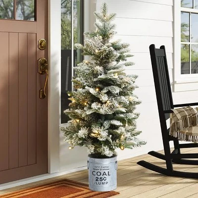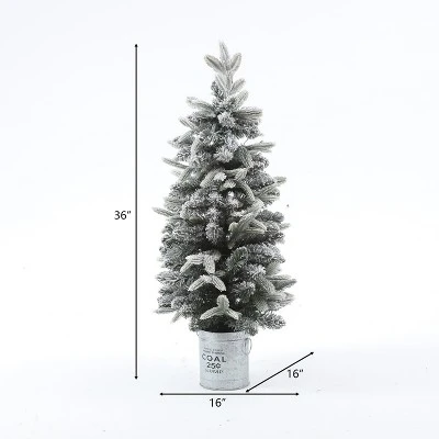 To create a festive environment this season, decorate your home, office, or special event with this sweet 3-foot artificial tree. Crafted from a combination of quality PVC and PE branches, this holiday decoration is made to bring Christmas cheer for years to come. Designed and decorated to feel lifelike and realistic, the lush artificial fir tree is flocked to give a snowy appearance. In addition, it has the added convenience of pre-strung lights. The pre-strung lights are powered by 4 AA batteries (not included) and have a convenient 6-hour timer. The artificial fir tree is featured in a rustic silver farmhouse-style round metal pot that complements the natural beauty of the faux tree. The tree also makes a beautiful and creative gift for that special person this holiday!.