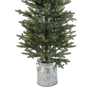 To create a festive environment this season, decorate your home, office, or special event with this sweet 4ft artificial tree. Crafted using a combination of quality PVC and PE branches, this holiday decoration is made to bring Christmas cheer for years to come. Designed and decorated to feel lifelike and realistic, the lush artificial fir tree has fluffy green tip branches and has the additional convenience of pre-strung lights. No worrying about cleaning up after this tree or untangling lights! Family and guests will marvel at the transformation of your home into a beautiful winter wonderland capturing the beauty and charm of the holidays. This artificial fir tree is featured in a rustic farmhouse style milk can pot that is visually appealing and complements the natural beauty of the faux tree. The tree also makes a wonderful and creative gift for that special person this holiday season!.