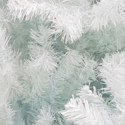 - FESTIVE TREE: Snowy, full-bodied silhouette artificial 7-foot tree in white is an eye-catching addition to your Christmas, Halloween, Birthdays, or events
