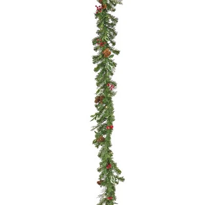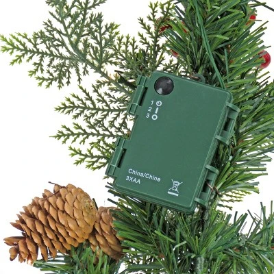 - This fantastically festive garland lights up and is trimmed with red berries and pine cones for natural appeal