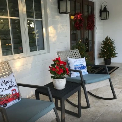 Bring a pop of color to your holiday decor with these red Poinsettias. Features six scarlet red and green poinsettia flowers with leaves nestled in a small tin vase. This floral decoration is perfect for mantles and tables.Features:Features five scarlet red and green poinsettia flowers The Poinsettias comes nestled in a small gray tin vase Realistic design6 flower headsRecommended for indoor use onlyDimension(s): 15.5″ high x 12″ diameterTin vase: 3.5″ diameter Material(s): plastic/tin