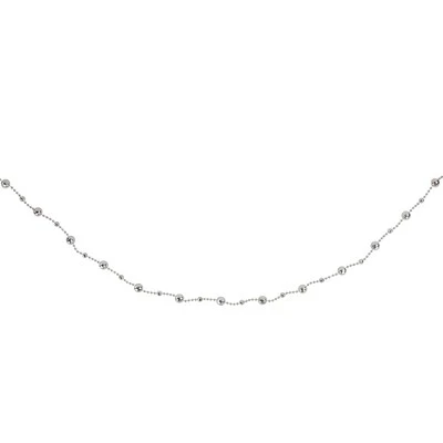 Add some extra sparkle and shine to your holiday decor with this beaded holiday garland. This garland features faceted silver disco ball beads that reflect the light beautifully, creating a dazzling display on your tree, mantel, or staircase. Product Features:UnlitBeaded holiday garland with matching stringShiny silver disco ball-shaped faceted beads Durable shatterproof materialFor both indoor and outdoor useDimensions: 15′ long x 0.5″ wide (widest bead)Material(s): plastic