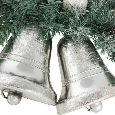 Add a touch of festive charm to your home this holiday season with this decorated holiday Swag. Features a silver-green pine and is pre-decorated with frosted pinecones, white iridescent ball ornaments, and two large silver bells making it a perfect addition to your holiday decor. Hang it on your doors, over your mantle, or on your staircase to create a warm and inviting atmosphere for your family and friends. Product Features:Unlit1.25″ – 2.25″ wide tipsBendable wire branches allow you to easily shape the swag and accommodate your decorating needsTinsel hook at the top for easy hangingRecommended for indoor use onlyNo assembly required – swag comes in 1 piece Dimensions: 18″ long x 15″ wide (at the widest point)Material(s): PVC/plastic/wireNote: Branches are compressed for shipment, and need to be fluffed out upon arrival to look like the photo.