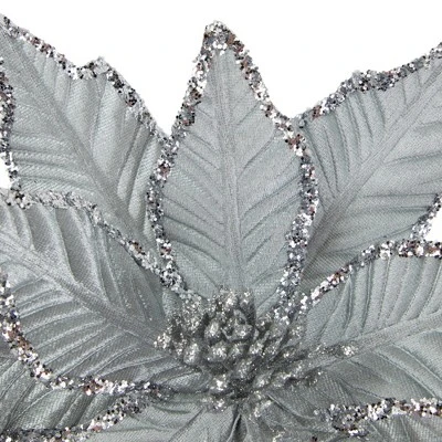 Add a touch of glamour and elegance to your holiday decor with this stunning silver Poinsettia floral holiday stem. Each petal features silver velvet like material with glittered edges, creating a beautiful shimmering effect. The wire centers in each petal allow for easy shaping, making it a versatile addition to wreaths, garlands, centerpieces, and more. Perfect for adding a touch of sophistication to your holiday decorations, this stem is sure to impress your guests and bring joy to your home this holiday season.Product Features:Glittered Poinsettia holiday stemAccented with silver glitter Soft velvet like fabricBendable wire in the petals and stemDouble wrapped wire stem for stabilityFor indoor use onlyDimensions: 25″ high x 12″ diameterMaterial(s): polyester/wire/plastic