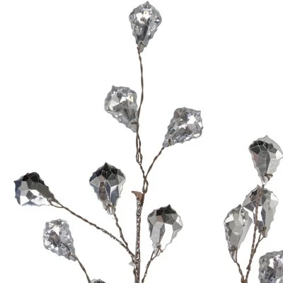 Get ready to add some holiday cheer with our artificial twig spray. Features faux jeweled leaves and silver glitter accents that beautifully catch the light, adding a touch of elegance to your holiday decor. Use it to decorate your holiday tree, wreaths, garlands, or any other holiday arrangements. Make your holiday season extra special with this timeless decoration.Product Features:Artificial twig with leaves holiday sprayDesigned with faux jeweled leaves Emberllished with silver glitterGreat for use with floral arrangementsFor indoor use onlyDimensions:30″HMaterial(s):plastic/glitter