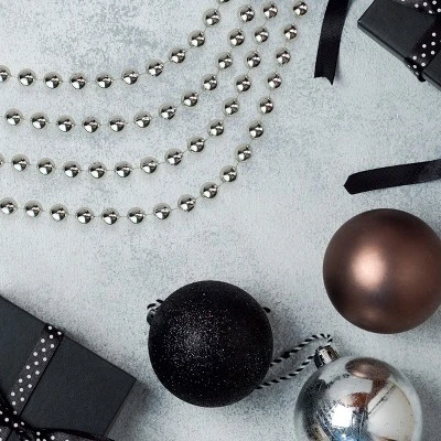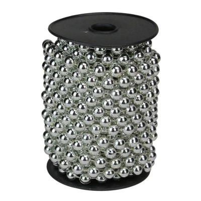 Add some shiny silver to your mantelpiece with this gorgeous beaded garland. Its traditional color is sure to bring your holiday decor together. Inspire envy with its unlit body, allowing you to decorate it as you wish.Product Features:Features unlit beaded garlandComes on a black spoolCan be used indoor or outdoorDimensions: 33’ long x 0.39” wideMaterial(s): plastic