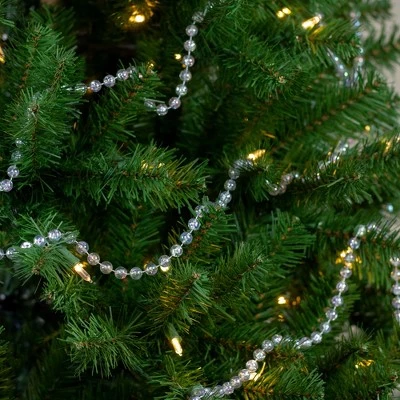 Make your holiday decorations shimmer and shine with this iridescent beaded holiday garland. The clear iridescent beads catch the light beautifully, creating a magical and festive atmosphere in your home. You’ll have plenty to decorate your tree, mantle, staircase, or any other area in your home.Product Features:UnlitClear iridescent round beadsDurable shatterproof materialComes on a spool for easy storage For indoor and outdoor useDimensions: 33′ long x 0.5″ wide Material(s): plastic