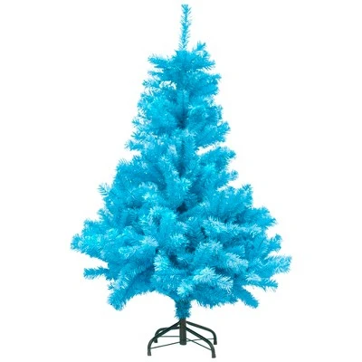 This striking holiday tree features no lights so that you can decorate it to your specifications. Impress your family and friends with this gorgeous and bold, blue pine, that is easily put up and taken down. The hinged branch construction lets you do it in minutes. This showstopper is durable and beautiful enough, to use year after year, even with the ever-changing trends. Product Features:Unlit510 tipstapered tipsFull profile treeHinged branch constructionFor indoor use only3-piece easy assembly (including stand)Comes with a FREE black metal tree standDimensions: 4′ high (from the base of the stand to the top of the tree)Distance from floor to the first row of branches: 0”27.5” base diameter (at the widest point)Material(s): PVC/metal