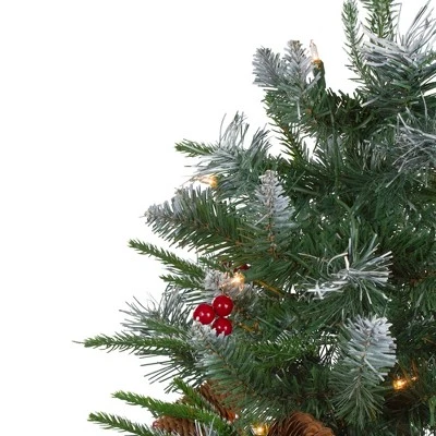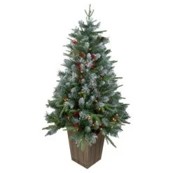 - 4 Foot Potted Frosted Mixed Berry Pine Artificial Christmas Porch Tree