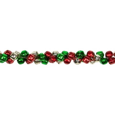 There’s something about traditional bell garland that brings out a nostalgic appeal to holiday decor. This garland has red, green and gold jingle bells that ring with each move of the garland. Perfect on a tree or mantle or on your door to welcome your holiday guests.Product Features:holiday jingle bell garlandRed, gold and green bellsEach jingle bell are fully functionalBendable wire center allows for you to shape the garland any way you desireMetal wire loops on each end for easy hangingRecommended for indoor use onlyDimensions: 5′ long x 1″ wideMaterial(s): metal