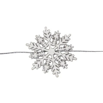 Add a unique touch to your holiday decor with this snowflake garland. The snowflakes are perfect for the winter season and adding a whimsical touch to your holiday decor. This garland can hang from trees, mantle places, and doorways. Product Features:White wooden snowflake garlandSnowflakes are strung on a silver cordSoft dusting of clear glitter provides sparkleLoop at the end for easy hangingRecommended for indoor use only, if using outdoors keep in a covered areaDimensions: 5′ long x 2″ wideMaterial(s): wood/string