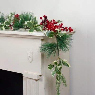Add some rustic flair to your holiday decor with this stunning garland. Features rich, red holly berries, in varying sizes for a realistic look. The green leaves compliment the berries allowing their colors to pop! Pine sprigs add that wintry outdoor feel. Ideal for doors, walls or as part of your holiday table centerpiece.Product Features:UnlitAdorned with holly and pine sprigsRecommended for indoor use onlyBendable, wire branches make it easy to positionDimensions: 60″ long x 5″ wideMaterial(s): plastic/foam/fabric