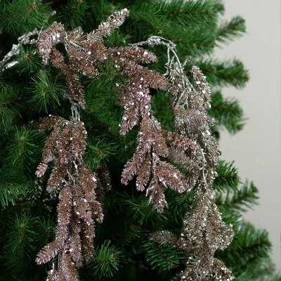 This item is part of the Vintage Romance collection and it is gorgeous! Featuring cascading branches of pine clusters covered in champagne glitter and sequences. Imagine how lovely this would look placed in a vase by your entry way. Buy a few sprays to create a full and plush look. Features :Champagne pine hanging spray Features branches of pine needle clustersEntire piece is covered in champagne glitterIncludes champagne colored sequins Features 3 cascading branches Recommended for indoor use only Dimensions: 48″ high x 8″ wide Material(s):plastic/metal