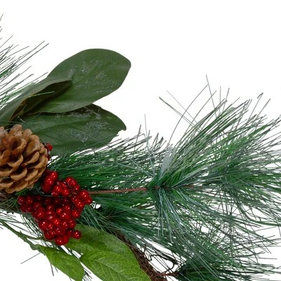 Add this traditional garland to your already existing holiday decor this year. Perfect to wrap around your banister or to decorate any room in your home.Product Features: Pine, berry and pine cone holiday garlandMixture of pine sprigs with red berries and pine conesBendable, wire wrapped branches make it easy to positionNo assembly requiredRecommended for indoor use or covered outdoor use Dimensions: 5′ long x 6″ wideMaterial(s): twig/plastic/metal