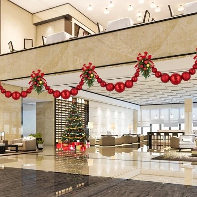 Add some holiday cheer to your holiday decorations with this shatterproof ball garland. Features shiny, glitter and matte ball ornaments and will add some sparkle to any room. Shatterproof ornaments combine the beauty of real glass with the durability of plastic. Perfect for mantles, railings or as part of your holiday table centerpiece.Product Features:Shatterproof ball swagShiny and matte red ball ornamentsComes ready to hang from a clear string on each endRecommended or indoor use onlyDimensions: 6’ long Ornament diameter sizes and quantity:9.75″ (1)7.75″ (2)6″ (2)4.75″ (2)4″ (2)3″ (2)2.75″ (2)Material(s): plastic