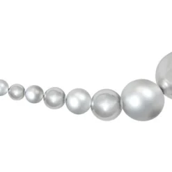 A classic style for the classic holiday! Enjoy this large, 6 foot swag that features shiny and matte finished silver ball ornaments in any room. The sleek silver fits in well with retro decorations or traditional decor. It features shatterproof ornaments, which means you don’t have to worry when placing it near kids, pets, or in high traffic areas. Product Features:Shatterproof ball swagShiny and matte silver ball ornamentsComes ready to hang from a clear string on each endRecommended or indoor use onlyDimensions: 6’ long Ornament diameter sizes and quantity:9.75″ (1)7.75″ (2)6″ (2)4.75″ (2)4″ (2)3″ (2)2.75″ (2)Material(s): plastic