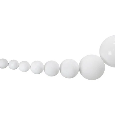 Update your holiday decor this season with this 2-finish shatterproof ball swag. Designed with shiny and matte ball ornaments for added depth. The Large size makes it perfect for bigger spaces. The ready to hang feature makes installation a snap. Shatterproof ornaments combine the beauty and luster of real glass with the unbreakable practicality of plastic.Product Features:Shatterproof ball swagShiny and matte white ball ornamentsComes ready to hang from a clear string on each endRecommended or indoor use onlyDimensions: 6’ long Ornament diameter sizes and quantity:9.75″ (1)7.75″ (2)6″ (2)4.75″ (2)4″ (2)3″ (2)2.75″ (2)Material(s): plastic