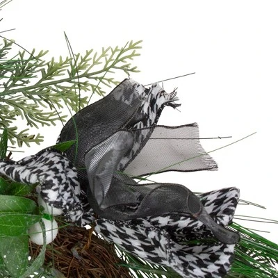 Get ready for holiday this year with this gorgeous garland. With its adorable bows and beautiful colors, it will surely impress your guests. Perfect to place on your mantle, wall, or door.Product Features:Unlit2” wide tipsFor indoor use onlyBendable wire center allows for you to shape the garland any way you desireBrown hooks on each end for easy hangingDimensions: 6’ long x 12” wideMaterial(s): PlasticNote: Branches are compressed for shipment, and need to be fluffed out upon arrival to look like the photo.