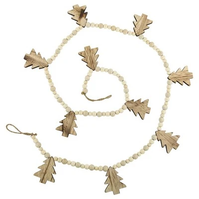 Bring the warmth and charm of the holiday season into your home with wooden garland. This beautiful garland features wooden holiday trees and beads and is perfect for adorning your mantel, staircase, or even your holiday tree. Crafted from high-quality materials, it’s durable enough to last for years to come.Product Features:Wooden holiday tree garlandFeatures wooden holiday trees and beads Loops on each end for easy hangingPerfect for decorating your tree or any other room in your houseFor indoor use onlyDimensions: 6′ long x 3″ wideMaterial(s): wood/jute