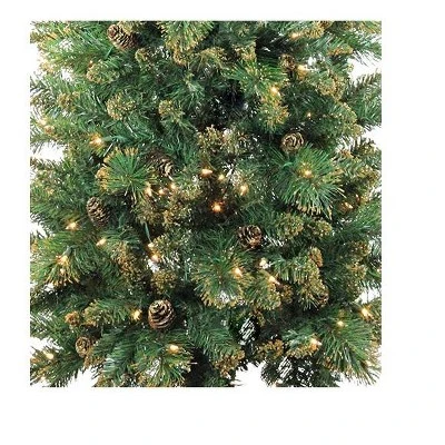 What else do you want to enhance your festive spirit than this lovely lighted artificial holiday tree? This tree with tiny luminaries on it elegantly emphasizes your space. Onlookers will be amazed by the beauty of this holiday decor. Product Features: Pre-lit with 250 clear lights Bulb size: mini 577 tips 4″ wide tips Additional Product Features: Hinged branch construction Light sets on tree are UL certified and approved for indoor or outdoor use, however the tree itself is recommended for indoor use If one bulb burns out, the rest will stay lit Lights are equipped with Lamp Lock feature, which makes them replaceable, interchangeable and keeps them from falling out 4-piece easy assembly (including stand) Comes with replacement bulbs and spare fuses Comes with free metal tree stand Dimensions: 7′ high (from the base of stand to the top of the tree) 28″ base diameter (at the widest point) Material(s): PVC/plastic/metal/bulbs/wire/glitterNote: Branches are compressed for shipment, and need to be fluffed out upon arrival to look like the photo.