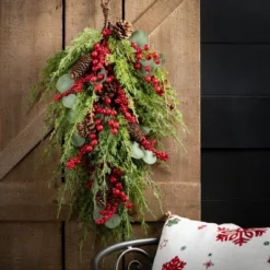 28" Unlit Artificial Pine Christmas Swag with Champagne Glitter Ornaments – Wondershop™