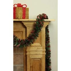 Northlight 12′ x 3.5″ Unlit Green/Red Wide Cut Christmas Tinsel Garland