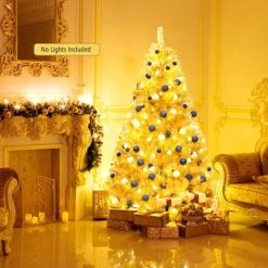 Tangkula Artificial Tinsel Christmas Tree Hinged Decoration Tree Champagne Gold