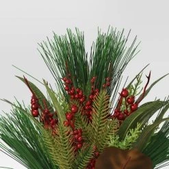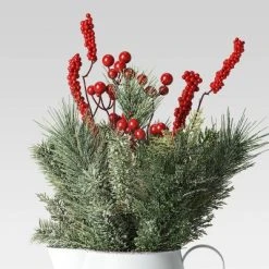 16" Mixed Greenery with Red Berries Christmas Artificial Plant in Bronze Vase – Wondershop™