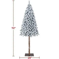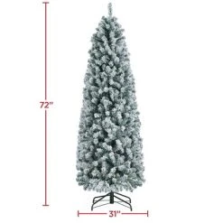 Yaheetech Prelit Flocked Pencil Artificial Christmas Tree Holiday Decoration Hinged Spruce, Green