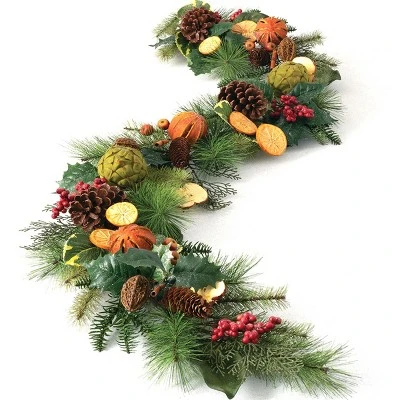 Highlighted with an elaborate combination of dried fruits, pine and berries, this Della Robbia style collection really makes a statement. The lush greens are complemented by the red and golden hues found in these incredible pieces. Garlands are an easy way to add instant décor and color to any room, shelf or mantel. Great to hang around your door too!Over the last 55 years, Sullivans has become an industry leader in home decorations. Our brand is rooted in tradition while incorporating modernized trends to keep your home looking up to date with timeless style. Here at Sullivans, we pride ourselves on creating product designs focused on quality and value, ensuring that our customers have access to beautiful products at reasonable price points.