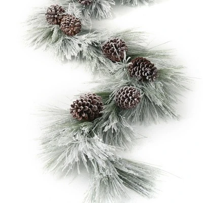 This lifelike, exquisite snowy pine collection will be the easiest way to bring the natural beauty of the wintry outdoors into your home. A simply elegant dusting of snow covers the pine cones and needles of this green to bring a touch of nature to all of your displays! Garlands are an easy way to add instant décor and color to any room, shelf or mantel. Great to hang around your door too!Over the last 55 years, Sullivans has become an industry leader in home decorations. Our brand is rooted in tradition while incorporating modernized trends to keep your home looking up to date with timeless style. Here at Sullivans, we pride ourselves on creating product designs focused on quality and value, ensuring that our customers have access to beautiful products at reasonable price points.