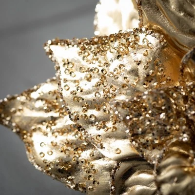 - Product Name: Artificial Gold Poinsettia Stem Gold 21.5″H