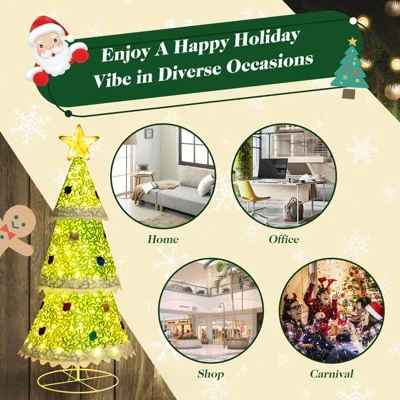 - Delicate & Attractive Look: Our pop-up Christmas tree is exquisitely crafted with a unique wavy border around the bottom edge of each tier and a variety of decorative patterns on the glittering green cloth. In addition, there is a large tree top star, which makes the whole tree look even more gorgeous.