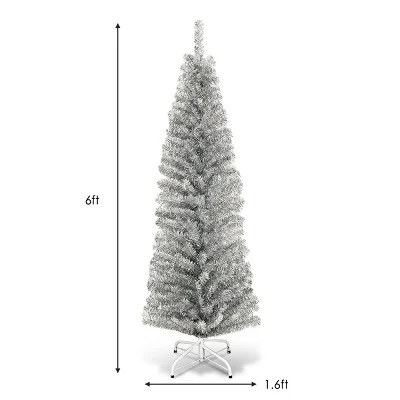 This Christmas tree is designed as slim pencil, which is unique and space-saving. With its delicate body, the artificial tree is perfect for display in corners, small rooms and areas with limited floor space, adding more excitement and originality to your life. Needles of this Christmas tree is made of high density PET, providing it with a fresh look that will last all season. Wonderful silver color and thick branches will increase vivid appearance to the tree and it will always be the most attractive thing in your Christmas party! May the season bring much pleasure to you!