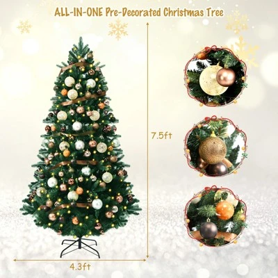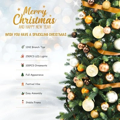 - 【Fully-Decorated Luxuriant Appearance】 Comes with 1242 branch tips and 100pcs extra ornaments, this Xmas tree provides you with lush tree shape and glorious look. You can hang the ribbons and colorful balls on the verdant thickened branches for better decorating and celebrating for the coming festival.