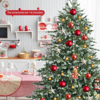 Wishing you all the joys of the Christmas season and have very happy New Year may you enjoy good health in the coming year. This 6/7/8ft tall Christmas tree with mixed PE and PVC tips is characterized by a rich and ultra-realistic appearance. With 892/1260/1658 fine crafted thick branch tips, the tree generates massive attraction and charms. Besides, you can add extra ornaments prepared by yourself as many as possible to make the tree look gorgeous. No matter where you place it, like living room, dining room and bedroom, the Xmas tree will bring a strong tone of wintry winter to your room. Put 3 sections together and expand the hinged branches is a breeze for everyone. Enjoy the happiness of Christmas with this nice tree!